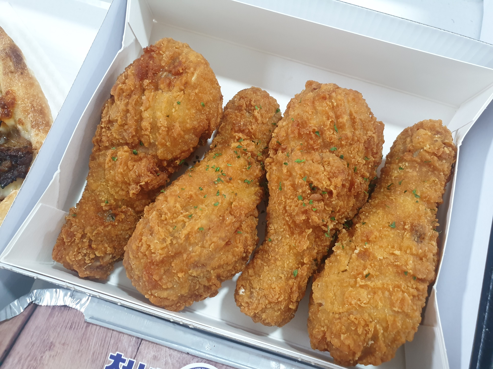 치킨은 국내산 닭으로 튀겨낸 닭다리 4개가 왔는데요.