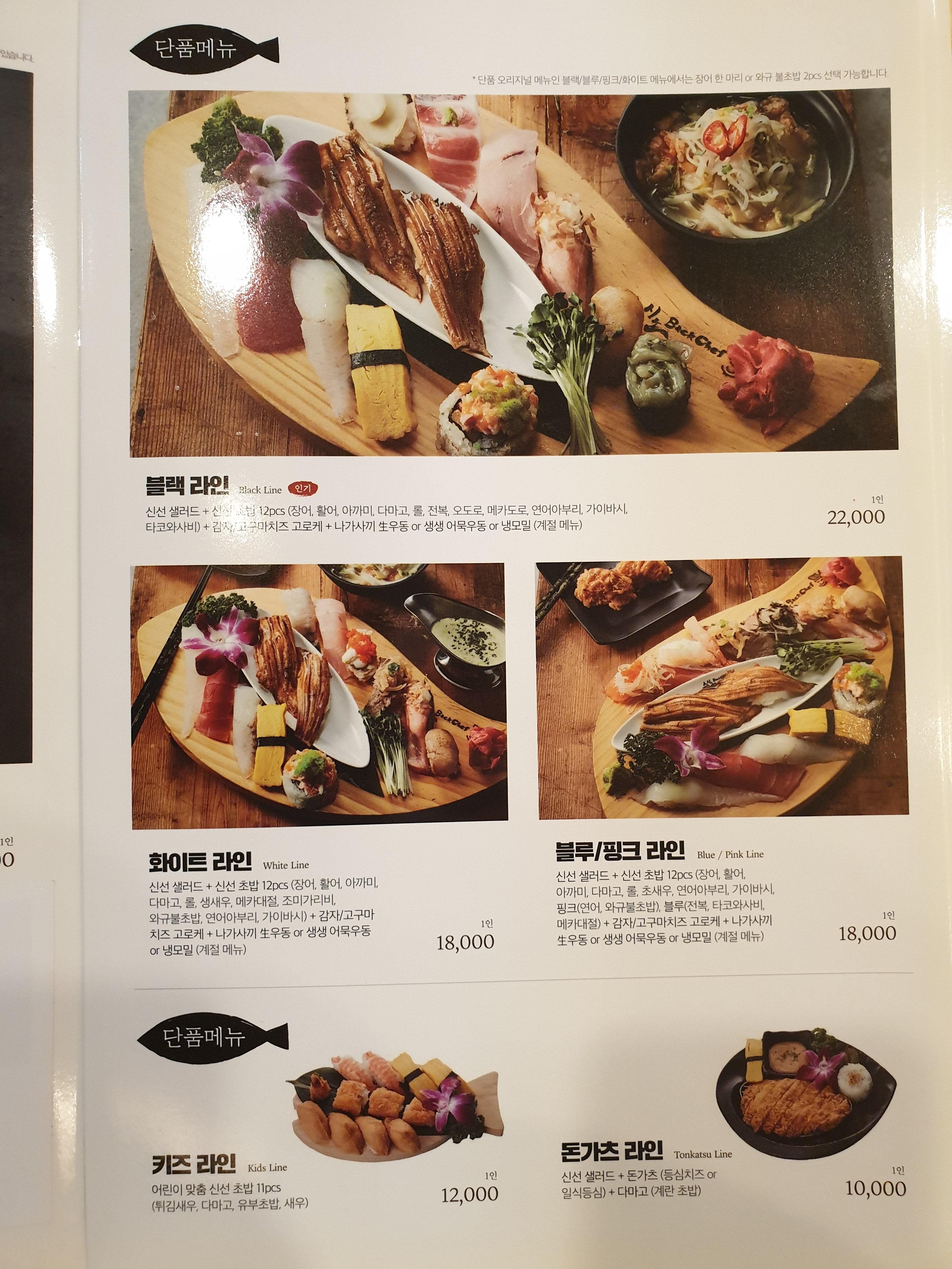 종류를 좀 알고먹고싶었는데 스시노백쉐프 메뉴판에도 죄다 일본어여서 뭐가뭔지 알 수 없지만...